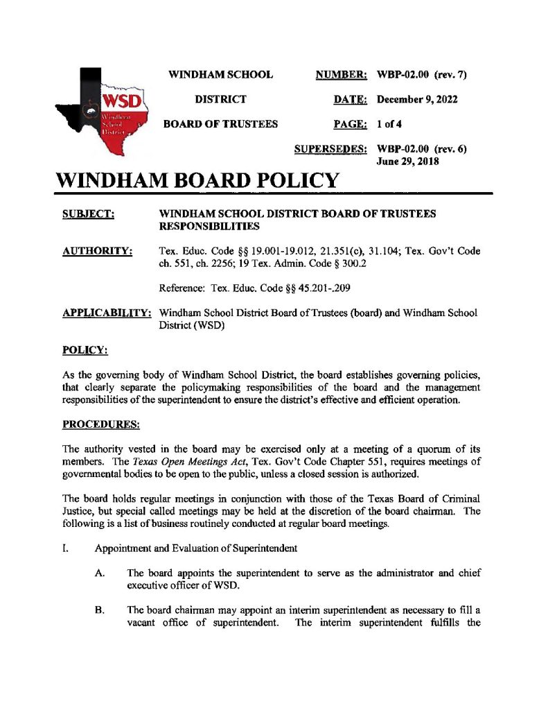 WSD Board of Trustees Responsibilities